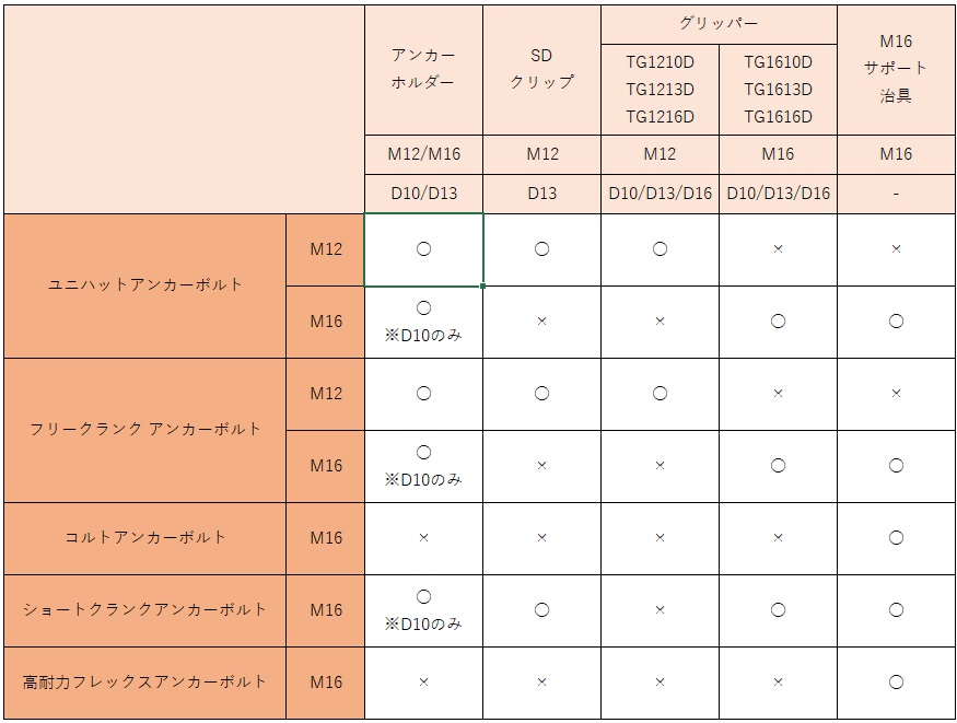 ●コルトアンカーボルト、高耐力フレックスアンカーボルトは軸径がφ14.5のため、ご使用はお控えください。