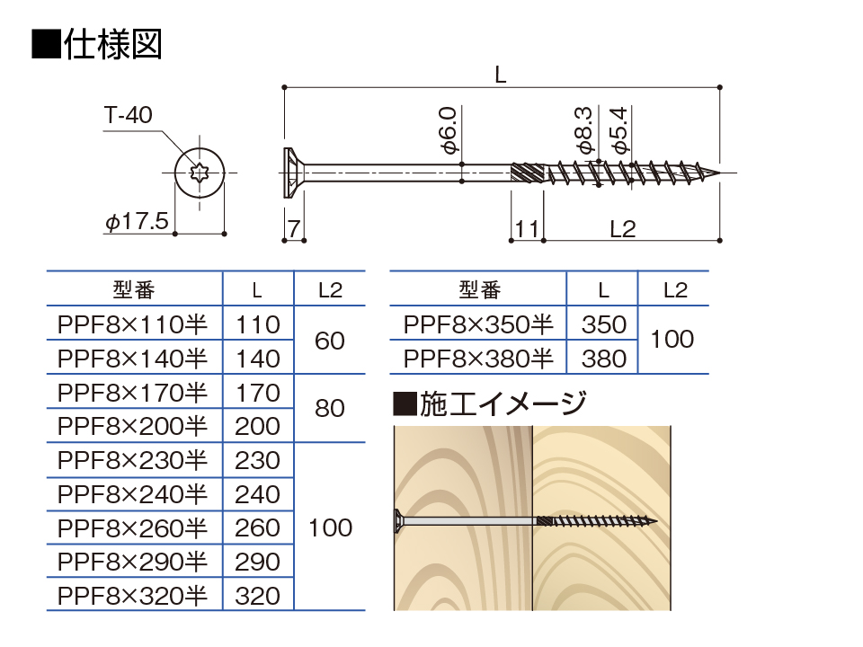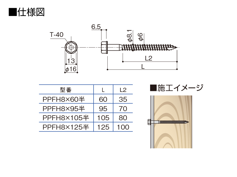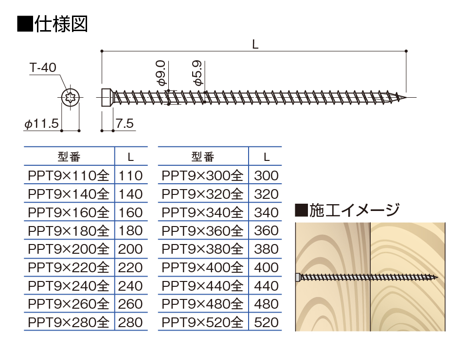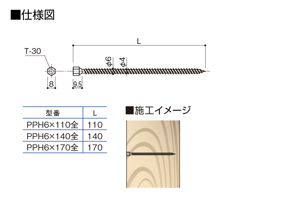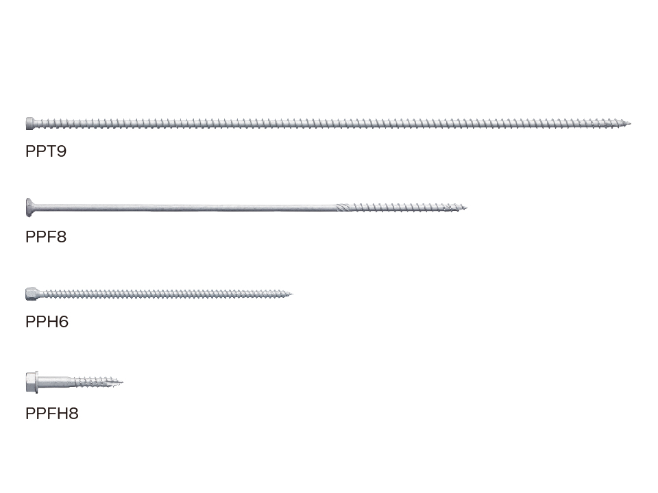木-木、金物-木を接合する木質構造用ねじです。使用目的に応じてビス形状や長さをお選びいただけます。
