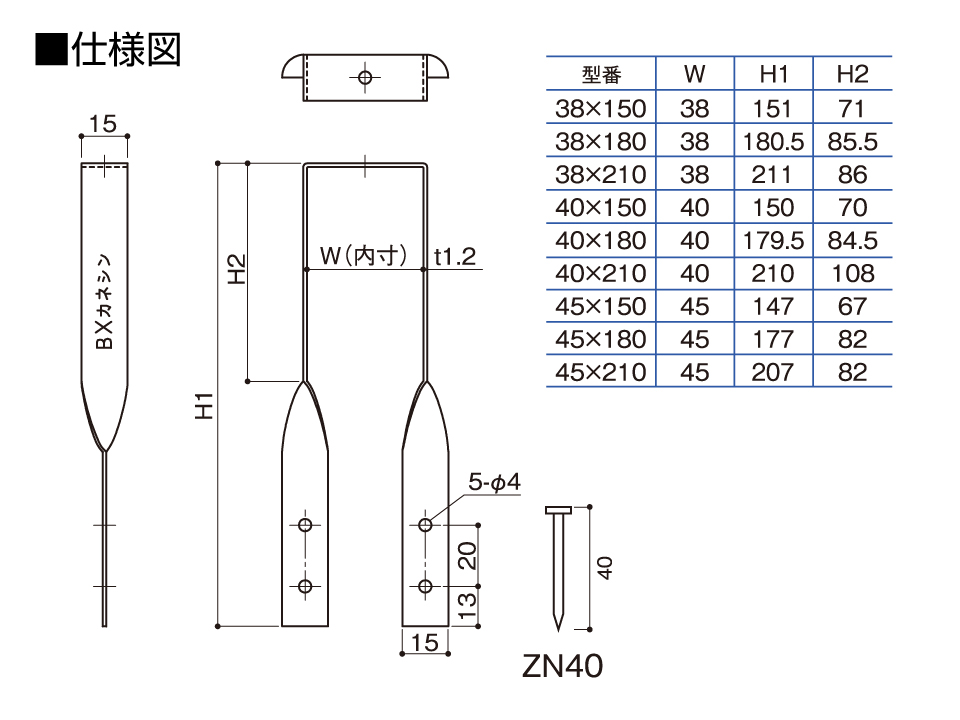 | 38×150 | 107300 | 1個 | 200個/ケース (40個×5袋) |