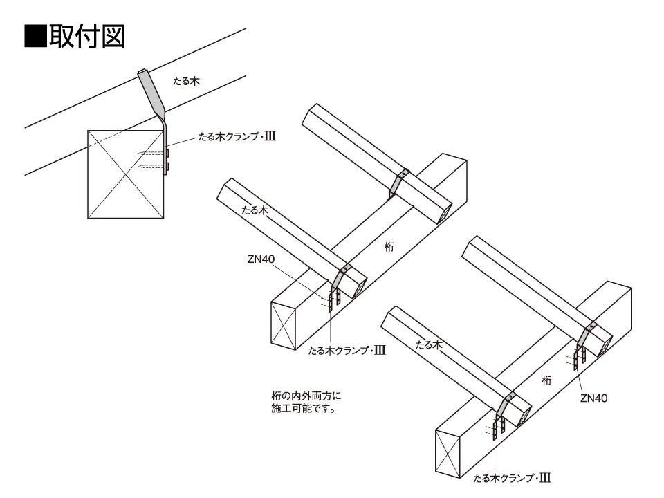 Qたる木クランプ・Ⅲの取り付け面は内側外側どちらに取り付けてもいいですか。