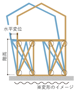 1/200rad(層間変形角)=15mm(水平変位)÷3,000mm(階高)