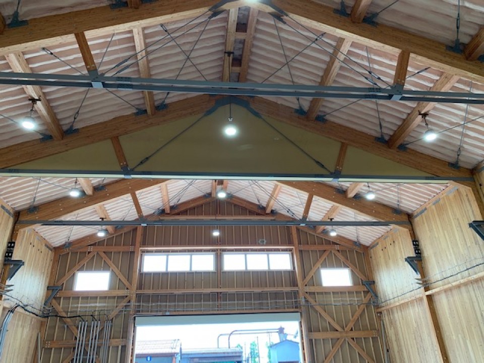 18mのトラスを地組みで施工したCLT+金物工法の大型パネル工場