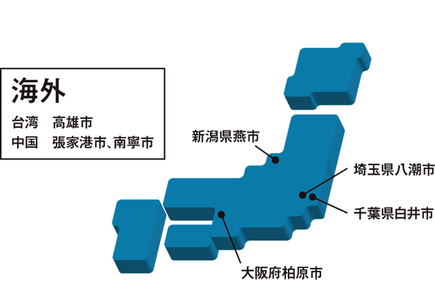 プロイズ、プロイズSの表面処理は、国内4拠点、海外3拠点で加工しています。